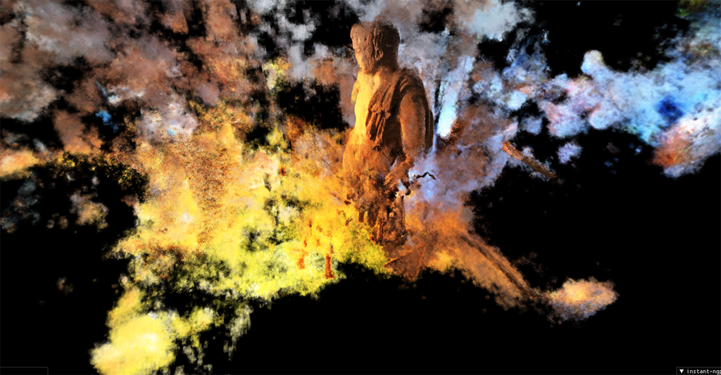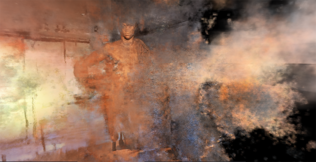I have seen the noise created in the Neural Radiance Field generation process as "hallucinations", language that is both poetic and problematic at the same time. Rather than attempting to reduce this visual phenomenon, I have been working with it (and finding ways to encourage / exaggerate it) as a way of embracing and exploring this NeRF aesthetic. (An aesthetic I assume will be optimised out of the process as the technology "advances")