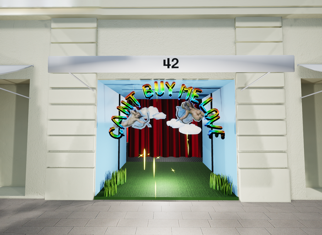 Presented through the lens of virtual reality, can’t buy me love is an immersive experience that purports to sell the audience the intangibility of spiritual enlightenment. It brings “reality” into a space that is “unreal” and where the item that is for sale is one that cannot be bought.